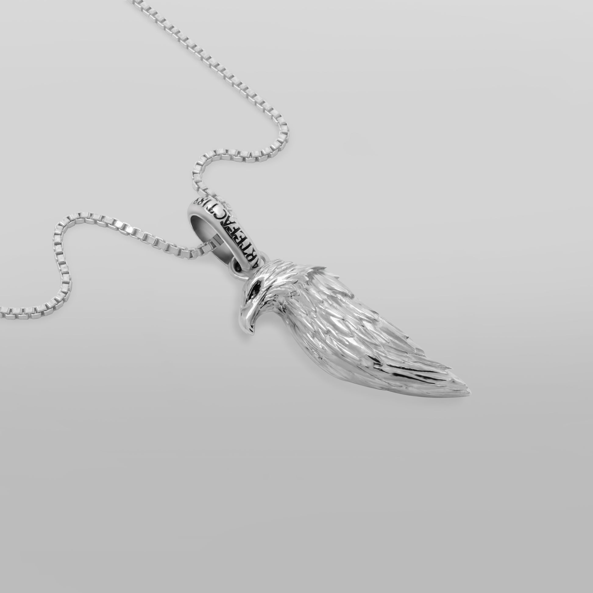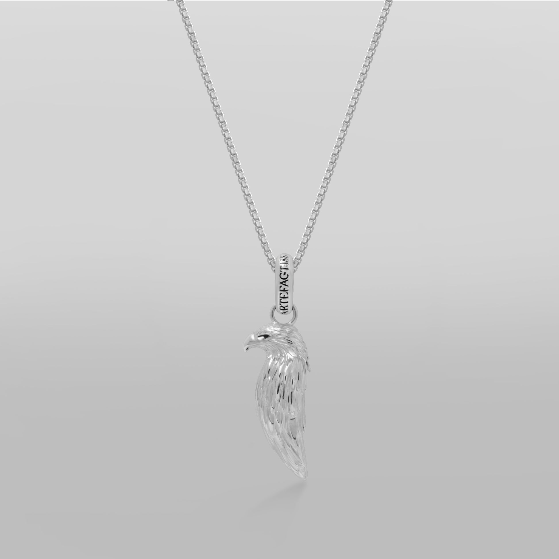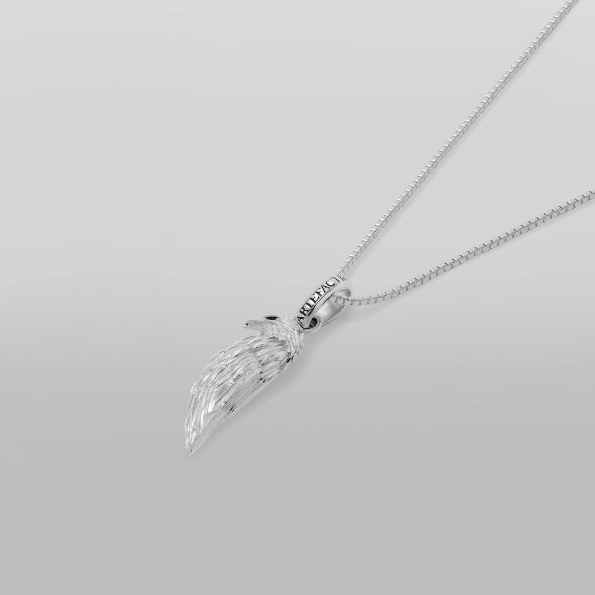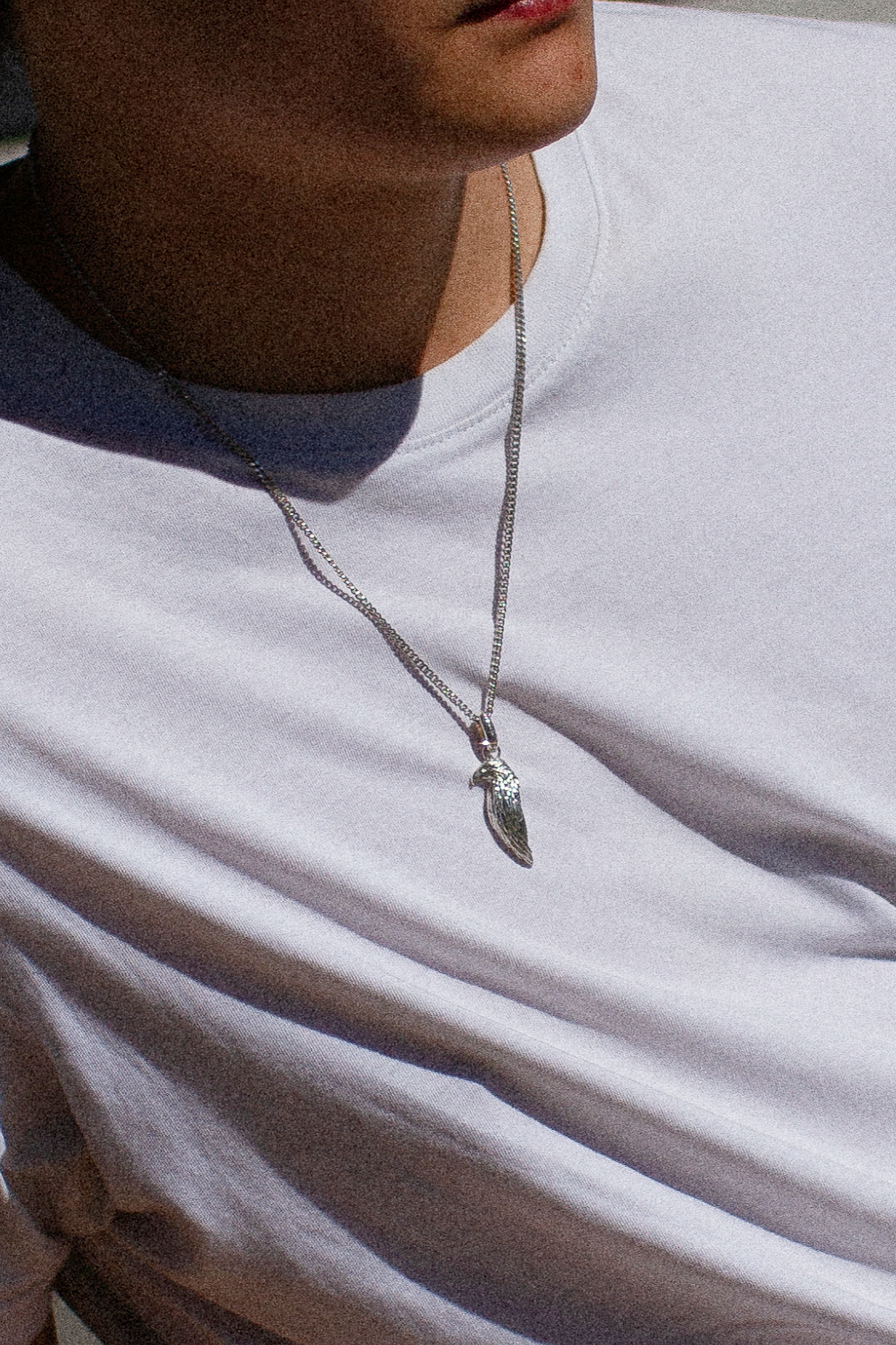 The Silver Eagle Pendant channels the spirit of the sky’s most commanding predator — a symbol of power, precision, and freedom. Sculpted in .925 sterling silver, this piece features a striking eagle head in profile, its sharp beak and piercing gaze captured with lifelike intensity. Every feather has been meticulously sculpted, giving the pendant a dynamic, stylised texture.