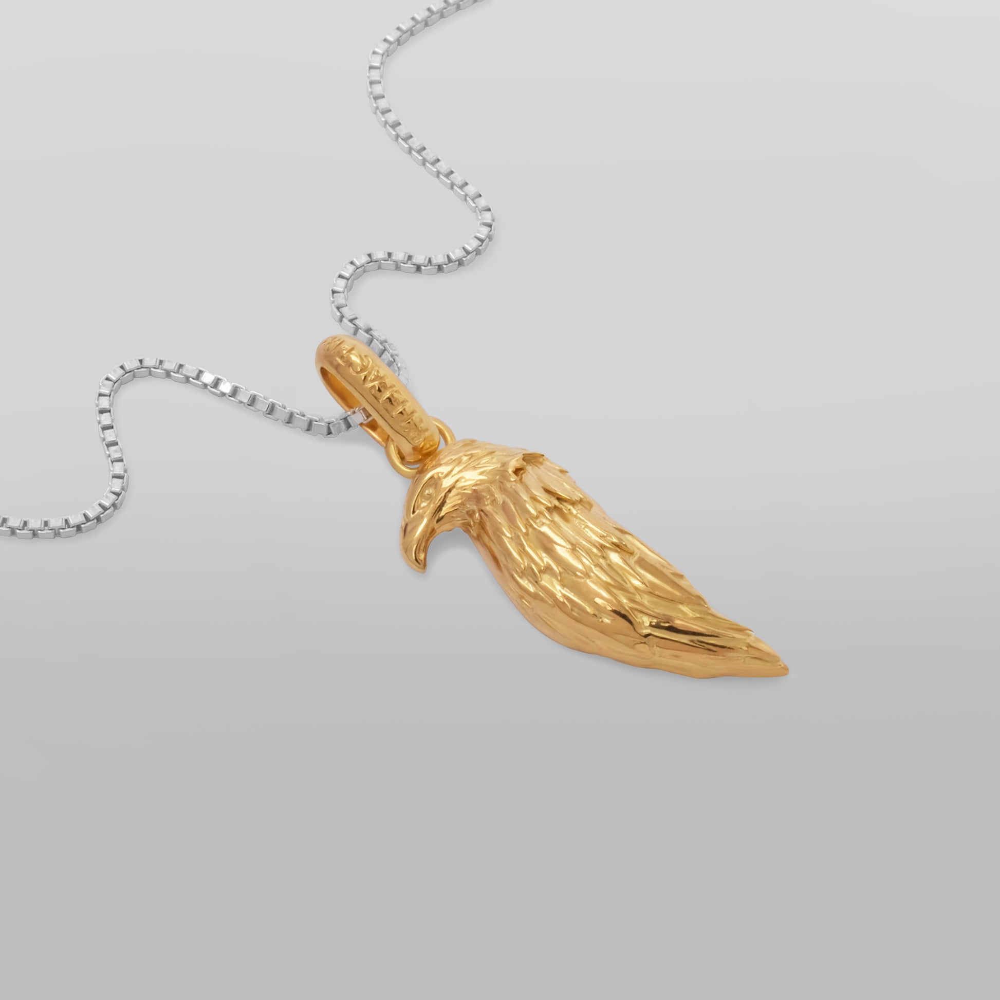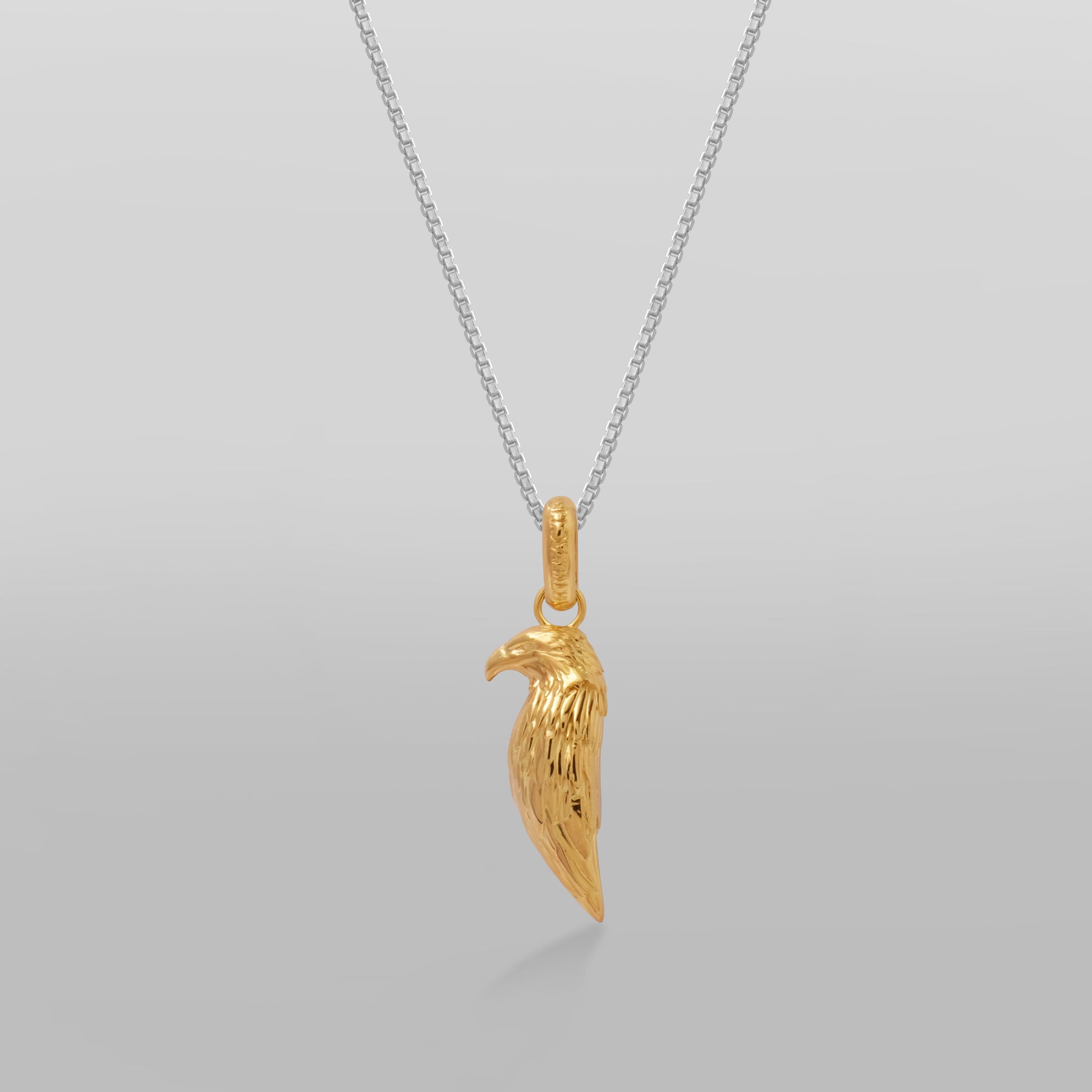 The Golden Eagle Pendant channels the spirit of the sky’s most commanding predator — a symbol of power, precision, and freedom. Solid 925 Silver has been luxuriously plated in 18k gold, symbolising duality, focus, and harmony between opposing forces. Every feather has been meticulously sculpted, giving the pendant a dynamic, stylised texture.
