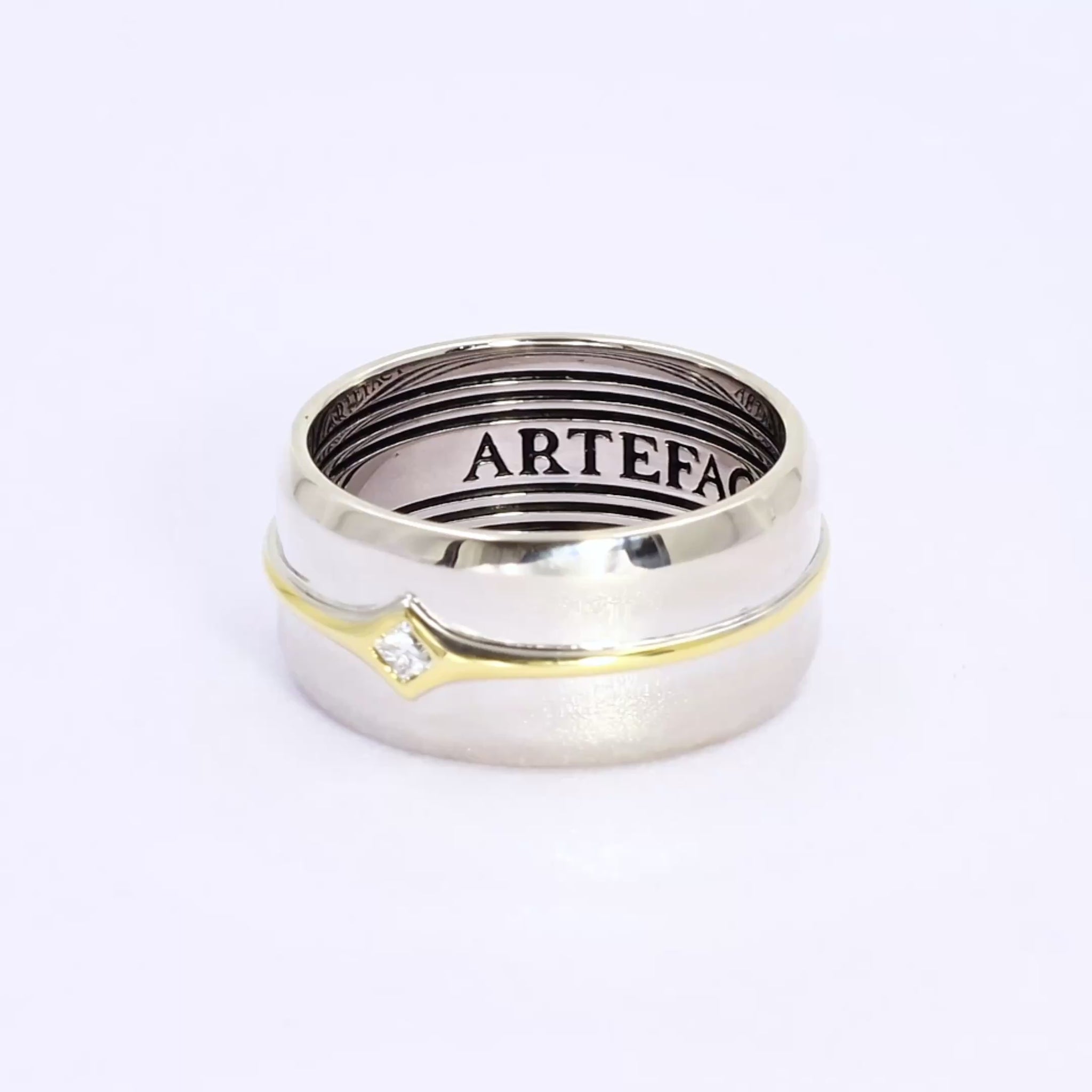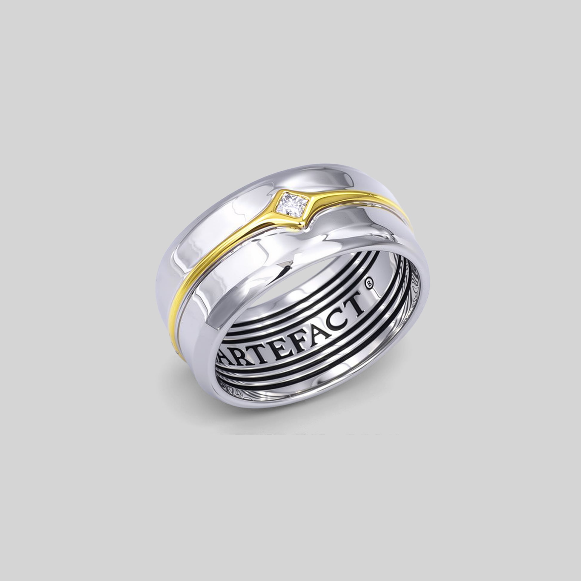 Crafted in solid sterling silver, the Starlight Ring | Electrum features a flowing, contoured profile that wraps smoothly around the finger. A single square-cut lab-grown diamond sits at the front, framed within a sculpted 18k gold-plated accent that cuts cleanly through the band. The contrast between the two metals creates a crisp, modern line—subtle but instantly recognisable.